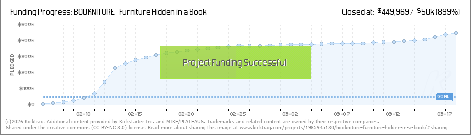 Cheers Kickstarter !! With all your great support, BOOKNITURE reach the goal within 5 days! It is amazing ! Keep it going, let everyone knows BOOKNITURE ~ Each of you helps my dream comes true ! (Read More)
