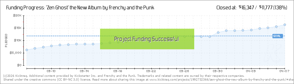 Zen Ghost will be a reality! Thanks to you all! As of 20 minutes ago we are completely funded for the Zen Ghost CD Project. We are so grateful that you are as excited about the new music as we are! If we weren't so disheveled at this very moment... (Read More)