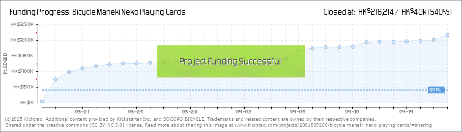 Dear Backers, Thanks for backing our Bicycle Maneki Neko Playing Cards. As our campaign has been half way through, we want to introduce a Kickstarter Exclusive Reward: Maneki Neko FOIL EDITION to you guys. ... (Read More)