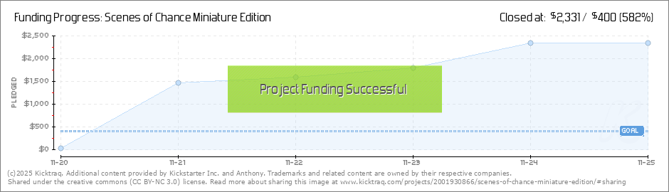 Well we are funded and two stretch goals knocked down. Here is a preview of the new icons, Flora and Fauna (plant & animal). These icons will be great additions to future expansions of the full sized Scenes of Chance. Next up 4 new scenes, let's... (Read More)