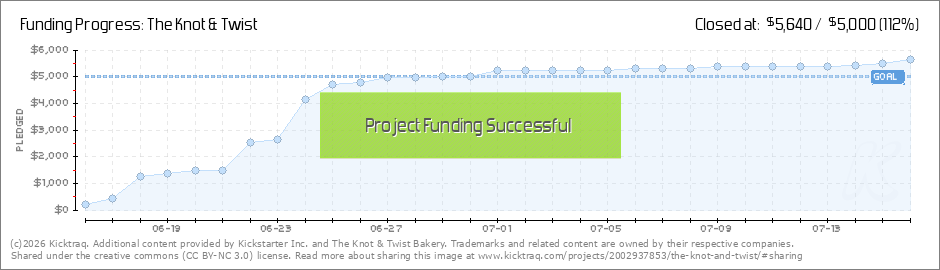 Hello Backers, Future Backers, Friends, & Family!We are getting closer & closer to our goal! We want to thank all of our backers for the support you have graciously and generously bestowed upon The Knot & Twist Bakery. We are so... (Read More)
