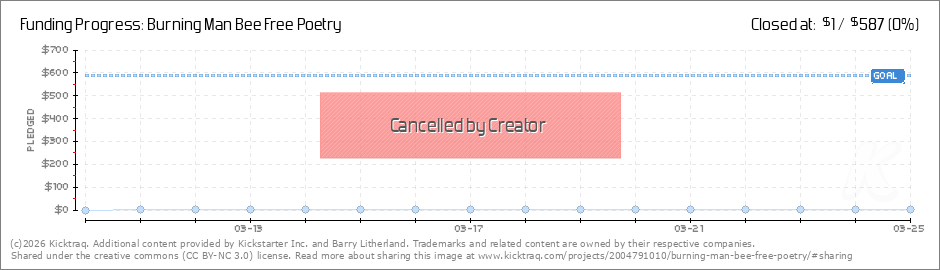 Due to our collective persistence and forward-thinking, the project's timeline has reached it's halfway point. Great job, everyone! Now, let's try to catch up the donation rate to match it, and we'll all be on board the honey bee poetry exhibition... (Read More)