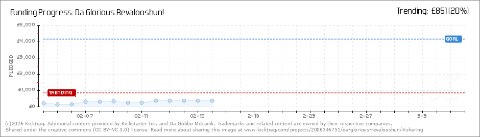 Help your backers reach your daily goals and help others see how you're doing. It's easy, with Kicktraq Mini.Here are a few quick snippits of code you can use to embed your personalized widget on your website, in your blog, and even on your favorite forum.