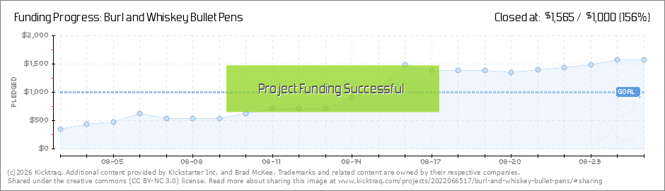Hi KickStarter, We are half way to our goal. Thank you to all of the backers so far. Please help us promote the pens so we can achieve our goal and even beyond. We have lots of new pens and even a pencil on the campaign. Thank you again, Brad (Read More)