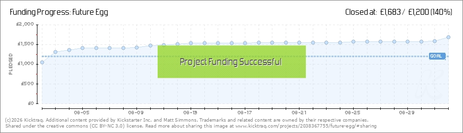 Well I certainly didn't expect to be posting an update like this so soon! Future Egg is fully funded!!! And in less than 24 hours! This is absolutely unbelievable. It means so much to me that so many of you pledged so much to help me make this a... (Read More)