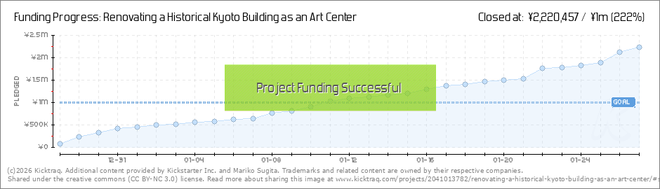 It has been 10 days since the crowdfunding launch. We are 56% of the way to our goal. Thank you very much to all backers for your support. We will report our progress regularly in this update. Early in the new year, we also felt a tremor in Kyoto,... (Read More)