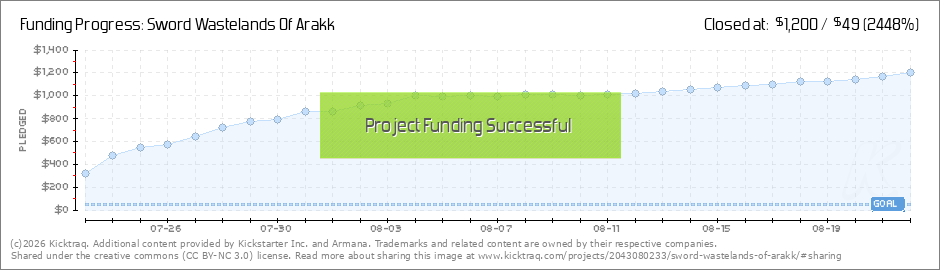 The Sword Wastelands of Arakk got funded in 10 minutes and got to its fourth goal in just a few hours!Being our first Kickstarter campaign ever, we are feeling hyped and grateful to get this progress so fast and we wanted to give you some updates... (Read More)