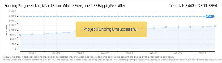 Help your backers reach your daily goals and help others see how you're doing. It's easy, with Kicktraq Mini.Here are a few quick snippits of code you can use to embed your personalized widget on your website, in your blog, and even on your favorite forum.