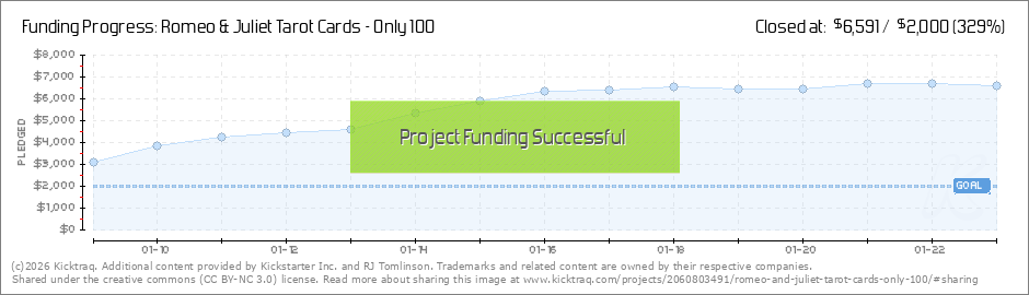 That was quick!!! (That's what she said). lol This is the quickest any of my projects have reached the funding goal. I'm glad that this deck will get made. Currently I don't plan on doing anymore tarot decks in the near future. You can never say... (Read More)