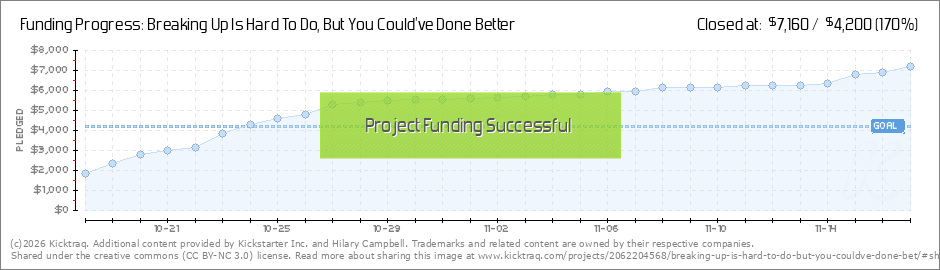 In just one week we are over 90% funded, in great thanks to your support!Normally I would say Mondays suck, but in this case, they are pretty great. You all rock! And I hope you can keep rocking throughout the day with our first volume of break up... (Read More)