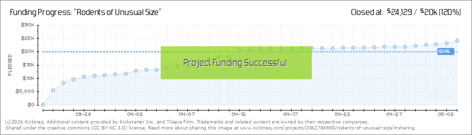 You like a challenge and so do we. We are in the final 24 hours of the Kickstarter fundraising campaign for our documentary RODENTS OF UNUSUAL SIZE. Things have gone great as we surpassed our original goal, but we're not stopping there. We are now... (Read More)