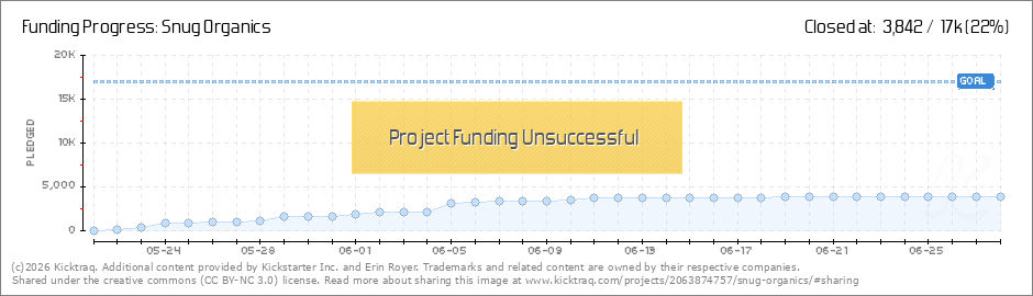 Hello All! I want to thank all of you so so much for your support and confidence in Snug Organics. Although we didn't reach our goal, we learned a lot through this process and have made some fantastic connections. We WILL have product in stock... (Read More)