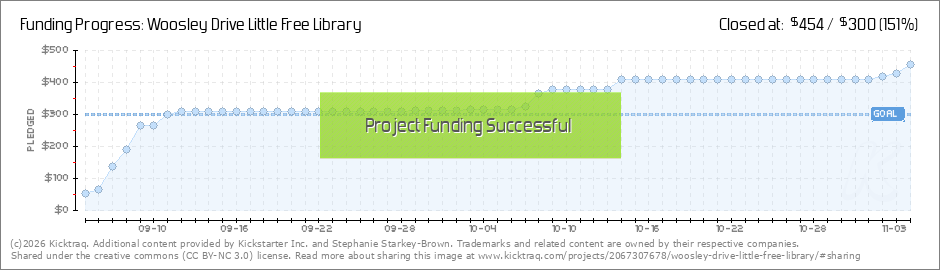 Woohoo! We made our second goal! Our next goal is $450 so we can get this adorable little free library. Thank you to everyone that has donated!! (Read More)
