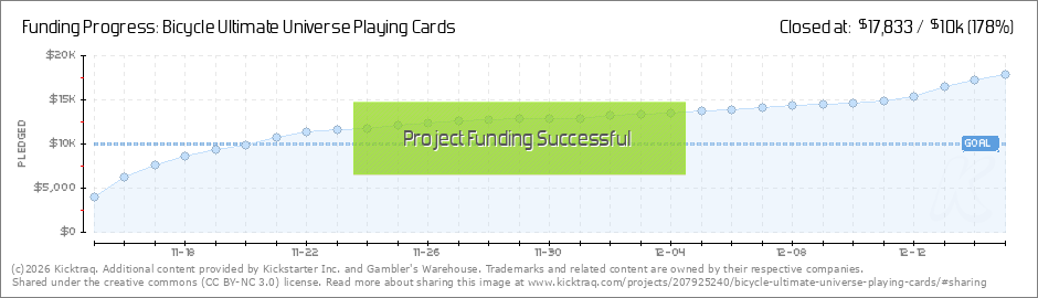 Hello everyone, we are now in FINAL HOURS of the project! We recently broke $17k!! :) We have received proofs from USPCC and everything is going over very smoothly. We will be ready to give them the go ahead to begin production as soon as the project... (Read More)