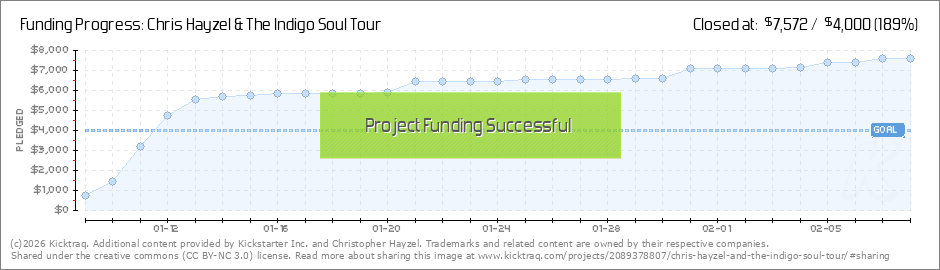 Hey everyone! I'm happy to announce that thanks to all of your generosity and support we've reached the second stretch goal of $6,500 and now I'll be able to write and record a new E.P. when I return from tour! I know I say this a lot but I can't... (Read More)