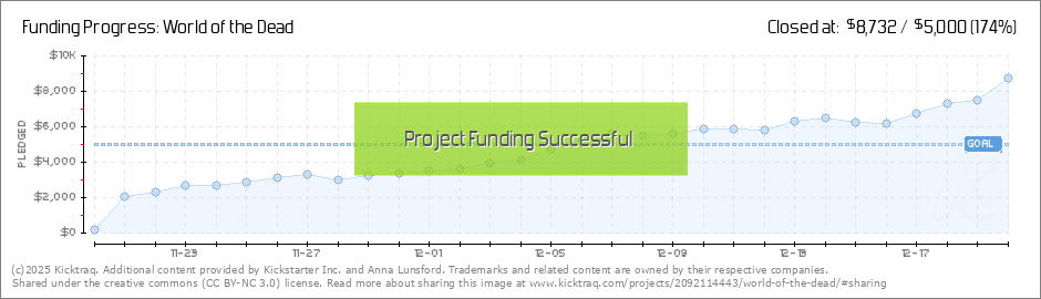 All copies of both the World of the Dead and World of the Dead Players Guide have been sent to Backers. Additionally, emails have been sent from RPGNow to all Backers to receive a free copy of the Wheels of the Dead. Remember to check your SPAM... (Read More)