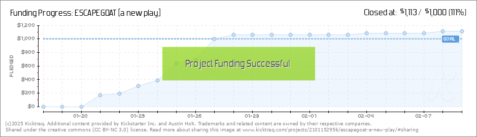 Help your backers reach your daily goals and help others see how you're doing. It's easy, with Kicktraq Mini.Here are a few quick snippits of code you can use to embed your personalized widget on your website, in your blog, and even on your favorite forum.