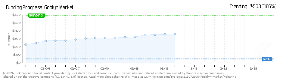 Help your backers reach your daily goals and help others see how you're doing. It's easy, with Kicktraq Mini.Here are a few quick snippits of code you can use to embed your personalized widget on your website, in your blog, and even on your favorite forum.