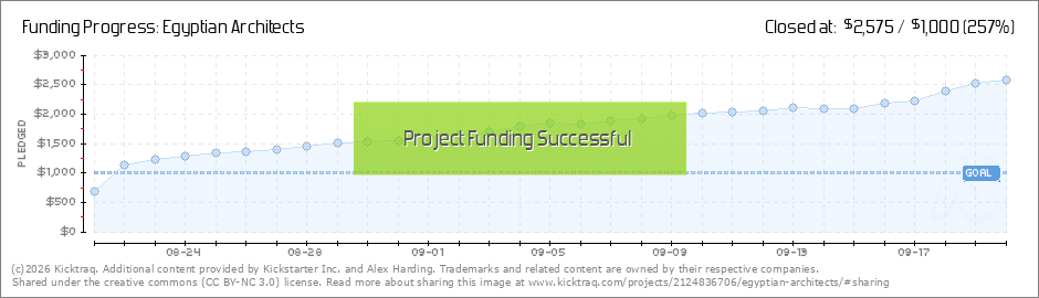 WHOA!!!! We made it already! Egyptian Architects has funded in just a little over 25 hours! Thank you all so much! As this is my first project I really didn't know what to expect, and thought it would take longer to get this far! Thank you all... (Read More)