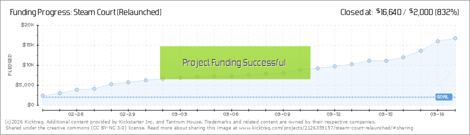 Dear Tantrumists (that's you, our backers!), Thank you guys for being awesome!! We funded Steam Court yesterday in less than 5 hours—that's amazing! Thank you for all the support and for continuing to spread the word about our campaign. We just... (Read More)