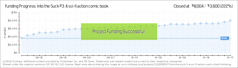 Into the Suck #3 has only 4 days remaining in the campaign and we are so close to unlocking the special back cover for everyone and next up is the digital wallpaper! If we hit the $8,555 mark - you can have your choice for a PC wallpaper or one... (Read More)