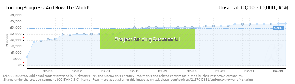 Dear Team Kickstarter Thanks to your generosity and all of your word-spreading, we have raised £3,002. We're overwhelmed. We can now give every venue a production which looks as good in a school hall as it does in a fully equipped theatre. So. We're... (Read More)