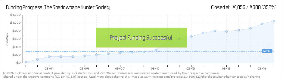 Shadowbane Hunter Society Is Funded!Thank you to everyone who helped fund this. Looking forward to getting the layout completed and sending out the books. Here is a draft of one of the weapons that Shadowbane Hunters use and will be part of the book... (Read More)
