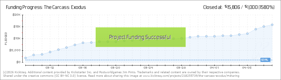 Okay. The Carcass: Exodus just hit 7k. I'm not surprised. I'm awesome. I deserve all of your moneys. Hand them over. And since I deserve them, I see no point in thanking anyone. I built this tribe of miscreants with my own two hands. Or some... (Read More)