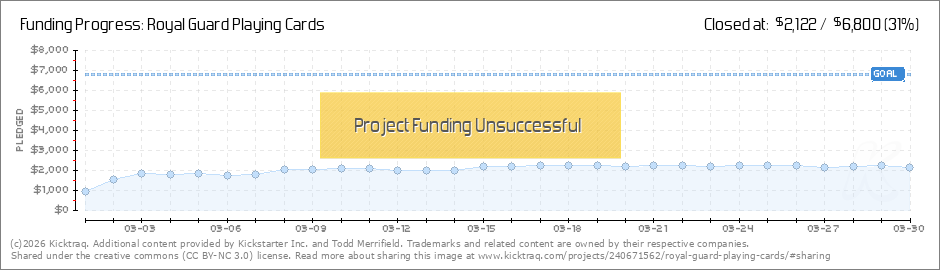 Four days ... less than 100 hours ... Wow! We're so excited to offer the Royal Guard Playing Cards to our supporters, but we need to keep pushing to reach our funding goal! If you haven't made your pledge yet, or if you have and think that a fellow... (Read More)