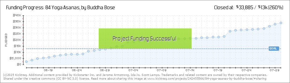 Buddha Bose, 84 Yoga Asanas Our goal was to be 84% funded by today, July 1st. Not only did we reach the goal and surpass it, we reached 100% funded!!! OH MY GHOSH!!! Thank you all for your invaluable support and involvement in this project! As... (Read More)