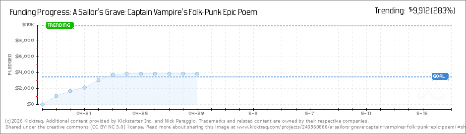 Help your backers reach your daily goals and help others see how you're doing. It's easy, with Kicktraq Mini.Here are a few quick snippits of code you can use to embed your personalized widget on your website, in your blog, and even on your favorite forum.