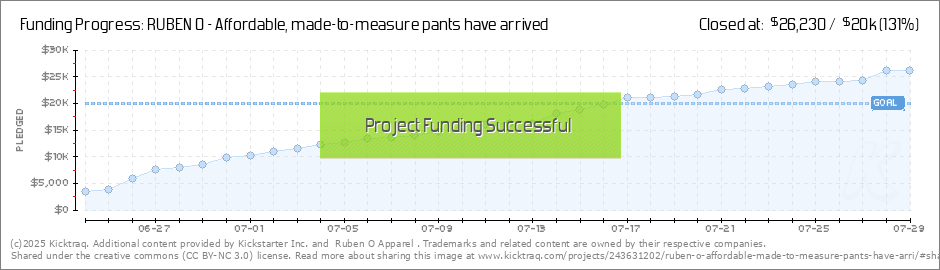 Dear backers, We have fantastic news, today we reached our funding goal of 20,000 euros! That means Ruben O Apparel is funded and will definitely come alive. And it's all thanks to you guys! People can still support our project, there is no funding... (Read More)