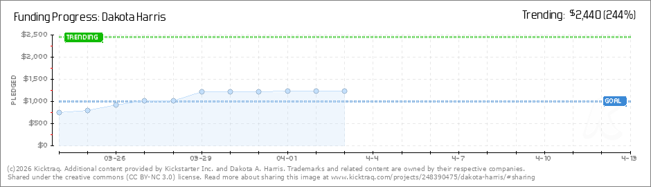 Help your backers reach your daily goals and help others see how you're doing. It's easy, with Kicktraq Mini.Here are a few quick snippits of code you can use to embed your personalized widget on your website, in your blog, and even on your favorite forum.