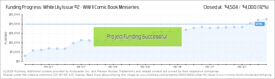 Its been a little less than a month, and more than 100 of you have joined us to bring this book to print. Thank you! We are currently $354 from our funding goal, with only a few days left to pledge. The great news is that production on White Lily #3... (Read More)