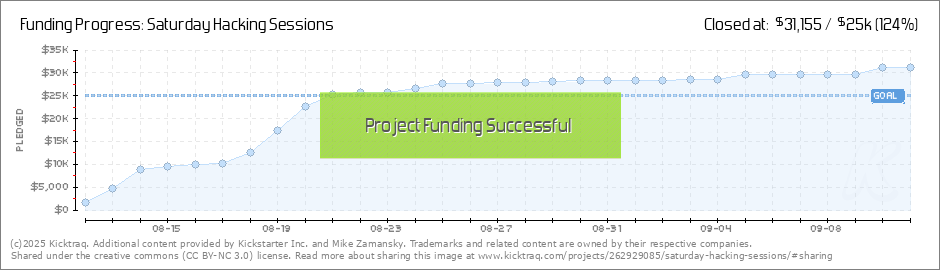 Just passed $25,000. Now we can start working on those stretch goals - hackathons, summer program and more. Thanks to everyone who's already become a part of this by kicking in and spreading the word. Let's keep spreading the word!!!!! (Read More)
