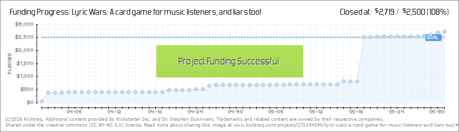 Thanks to our supporters, we have met our minimum campaign goal to produce the 1st Edition of Lyric Wars! Please be sure to continue to share this with your friends and family as the campaign still has over a week to go, and donors are needed as we... (Read More)