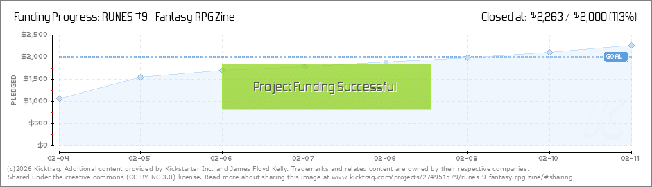 Help your backers reach your daily goals and help others see how you're doing. It's easy, with Kicktraq Mini.Here are a few quick snippits of code you can use to embed your personalized widget on your website, in your blog, and even on your favorite forum.