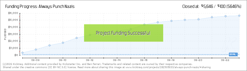 This campaign has hit Breitbart. https://www.breitbart.com/tech/2018/08/10/kickstarter-ignores-terms-of-service-with-always-punch-nazis-project/ (Read More)