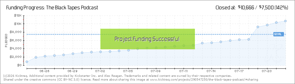 Thank you SO MUCH for making The Black Tapes Podcast's first day on Kickstarter a success! Like the video says, we really are humbled and grateful, and we plan on making the next six episodes even better than the first! Terry, Paul, and Alex PS:... (Read More)