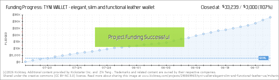 Hi Everyone, I am pleased to announce a new stretch goal: TYNI Wallet in Black Saffiano Leather that will be unlocked at $27,000 or 900 backers. Black Saffiano leather (middle) For us to reach this goal, we need all the support we can get so please... (Read More)