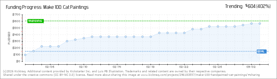 Help your backers reach your daily goals and help others see how you're doing. It's easy, with Kicktraq Mini.Here are a few quick snippits of code you can use to embed your personalized widget on your website, in your blog, and even on your favorite forum.