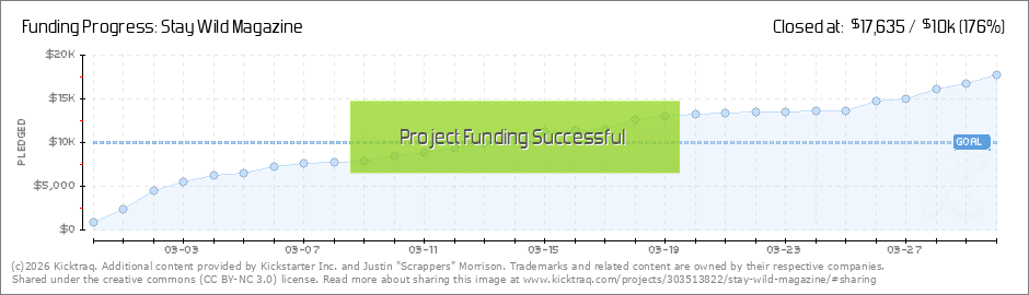 You folks rule!!! You've brought us 3/4 of the way to funding this free adventure magazine in just one week!!!! But we're not there yet, so we've added some awesome new rewards! We just posted a bunch of original Stay Wild art by our favorite artists... (Read More)