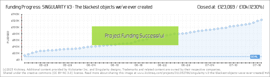 Hello backers! We've come a very long way in a couple of short weeks so we'd like to thank all of you new and returning backers for supporting us. We very much look forward to mesmerising you with our blackest ever objects and we've already got our... (Read More)