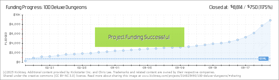 Our $6500 was surpassed sometime while I was asleep, so that means the 30 additional dungeons will include maps by Gill! $7000 was passed just as I was writing this, so they will be illustrated by Justin too! A number of people have expressed... (Read More)