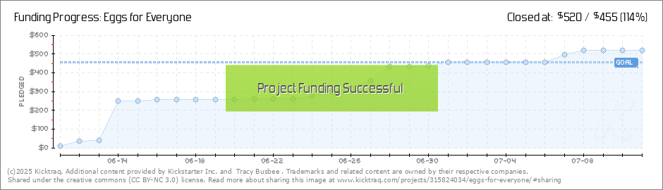 Thank you ALL for your financial support! Please continue to spread the word about the Eggs for Everyone project to ensure it comes to life. Kindest regards, Tracy (Read More)