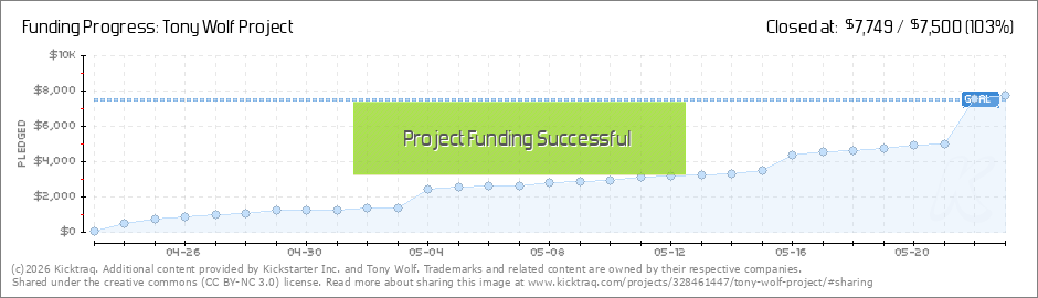 So far the Tony Wolf Project has 31 backers and has raised over $1000. We still have a long way to go though. A $10 donation is the same as a pre-order for the new CD. $30 pre-orders the book and CD. Thank you all for getting behind the production of... (Read More)