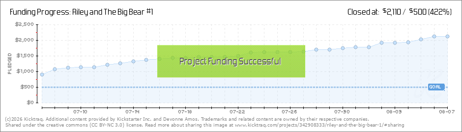 Who's awesome!? All of you are!! She can't believe either!! It would appear that I vastly underestimated the support for Riley and The Big Bear that you guys have shown. I've never used Kickstarter before and I figured $500 was being a tad... (Read More)