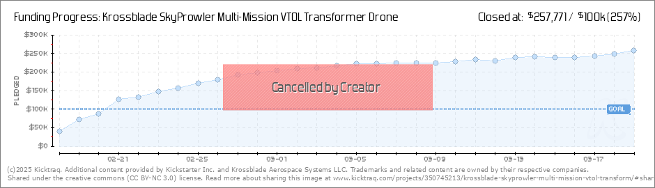 A special thank you to all backers who are supporting SkyProwler. You are awesome! The USD 100K funding goal has already been reached, thanks to you! A big thank you also to the many people who consider backing SkyProwler, are interacting with us,... (Read More)
