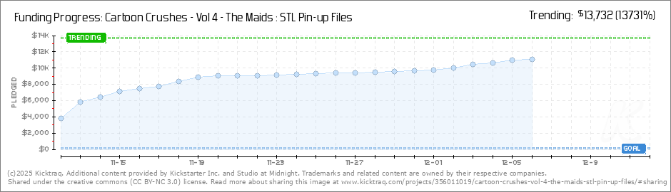 Help your backers reach your daily goals and help others see how you're doing. It's easy, with Kicktraq Mini.Here are a few quick snippits of code you can use to embed your personalized widget on your website, in your blog, and even on your favorite forum.