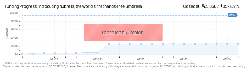 To all of our Kickstarter supporters and Nubrella fans, Great news! Nubrella has successfully raised private capital to bring our exciting new game changing hands-free umbrella designs to market. Yet, due to our funding goal we need to re-launch our... (Read More)